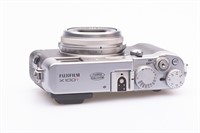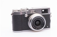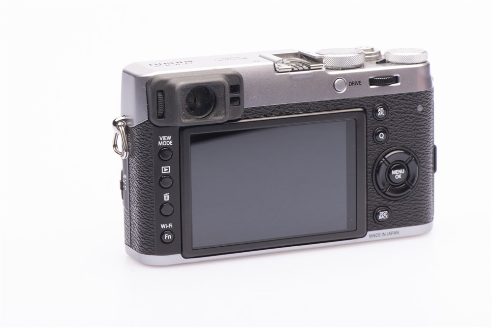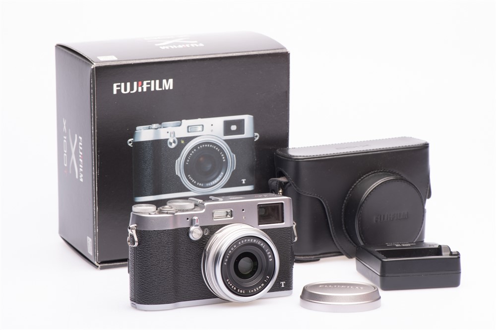 Medföljande tillbehör: frontlock, batteri, laddare, filterring, motljusskydd, rem samt kartong och väska.