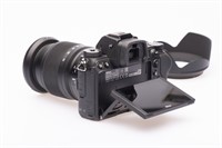 Medföljande tillbehör: Batteri, laddare, blixtsko skydd, motljusskydd, frontlock samt remöglor.