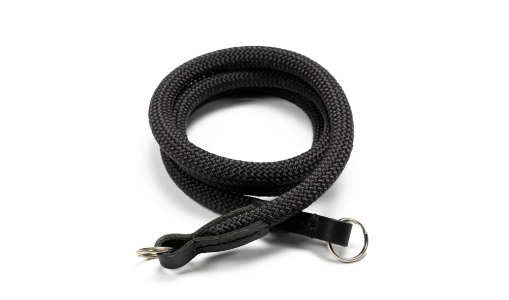 Handgjord i Europa av 10 mm silkepolyesterrep med avslut i 3,5 mm svart läder och en 15 mm nickelpläterad nyckelring för kamerafästet.Remmarna är 1 meter långa.