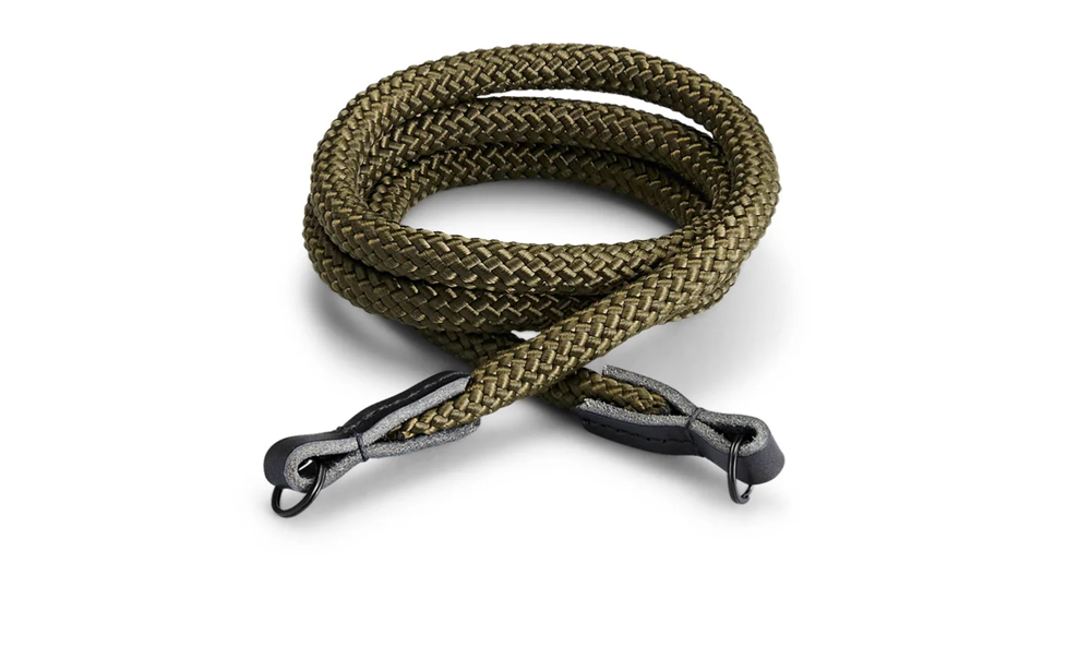 Handgjord i Europa av 10 mm silkepolyesterrep med avslut i 3,5 mm svart läder och en 15 mm nickelpläterad nyckelring för kamerafästet.