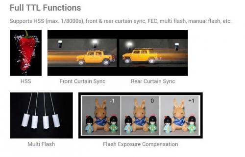 GODOX TT350 har t.ex stöd för High Speed Sync och kan synkroniseras med riktigt snabba slutartider (upp till 1/8000s). HSS-funktionen på speedlite-blixten är smidig att använda vid porträttfotografering utomhus, då snabbare slutartider gör det möjligt att arbeta med en större bländare för att få ett kortare skärpedjup. Andra användningsområden då High Speed Sync uppskattas är t.ex när man plåtar motljusbilder utomhus eller när man vill frysa en snabb rörelse vid t.ex sport.