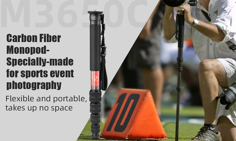 Sunwayfoto M3650C Carbon fiber monopod är ett mycket stabilt och högt enbensstativ för t.ex sport-, konsert- och fågelfotografer där man ofta har behov av att snabbt kunna förflytta sig för att fånga motivet från andra vinklar.