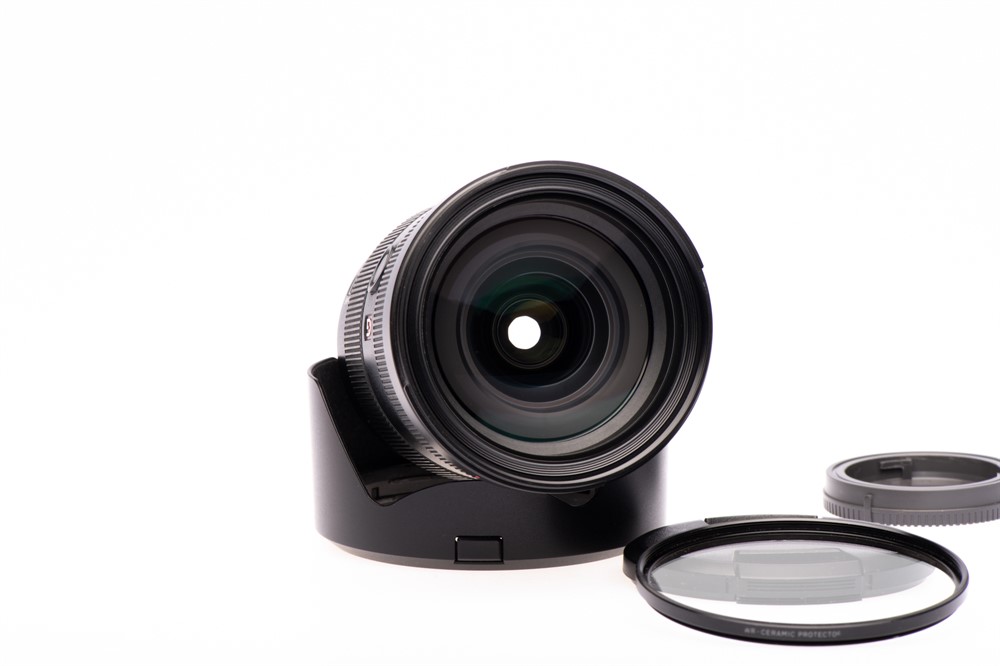 Medföljande tillbehör: baklock, frontlock, motljusskydd, filter samt väska.