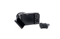 Medföljande tillbehör: Rem, nätadapter med batteri adapter, deadcat skydd för mikrofon samt laddare ( ej orginal) batteri, optik.