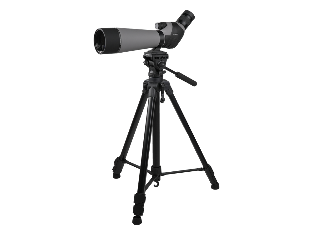 I kombination med stativet från Benro som har en bekväm arbetshöjd från 62 till 169 cm, gummerade fötter, och som klarar en tubkikare (eller kamera/videokamera) upp till 5 kg. En krok i nedre änden av mittpelaren gör att man kan hänga något tungt för att tynga ner stativet så det står stadig även i kraftig vind.