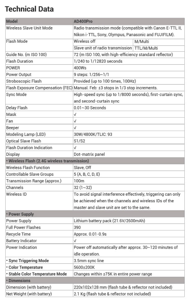 - Mycket kraftfull och portabel studioblixt på 400Ws!