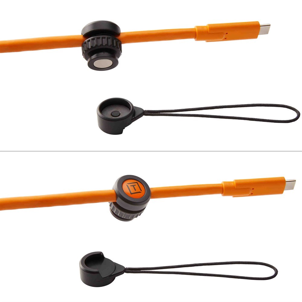 TetherGuard Camera Support, TG020. Kabellås för kamera och fototillbehör. TetherGuard TG020 avlastar kamerans kontakter och förhindrar oavsiktliga kommunikationsavbrott. TetherGuard Camera Support låser fast kabeln med magnet vilket gör att TG020 kan frigöra kabellåset samt att kabeln riskerar åka sin anslutningskontakt. Alternativt kan TG020 låsas mot kabeln med fastare grepp vilket gör att kabellåset inte kommer att utlösa, med risk att kamerastativet kan välta.