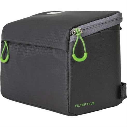 Filter Hive passar i dina olika kameraväskor, kan bäras på ett bälte eller på modulskenan på MindShift Gear-ryggsäckar eller hängas på ett stativ. Dess vadderade yttre hölje och avtagbara insats i dragspels-stil rymmer upp till sex plana graderade neutraldensitets-filter upp till 4x6” (100x150 mm) och sex runda filter upp till 82 mm diameter, inklusive de tjocka 1,5 cm variabla neutraldensitets-filtren.