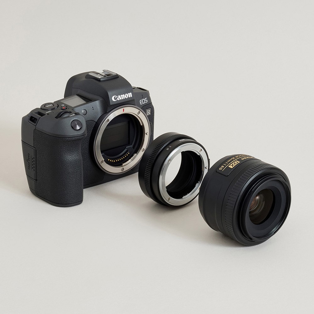 Experimentera med nya objektivkombinationer och använd ett Nikon F (G-typ) objektiv på din Canon RF-fattningskamera.