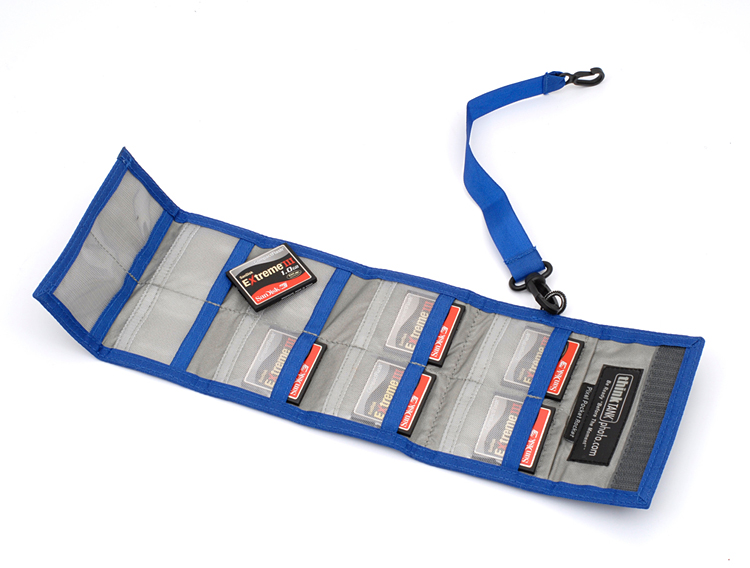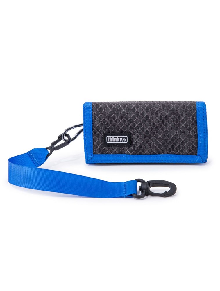 Smidig hopvikbar plånbok för 10 CF- eller CFexpress-/XQD-minneskort som enkelt får plats i fickan eller som kan fästas i bältet eller väskan.