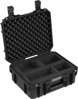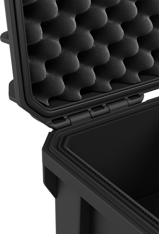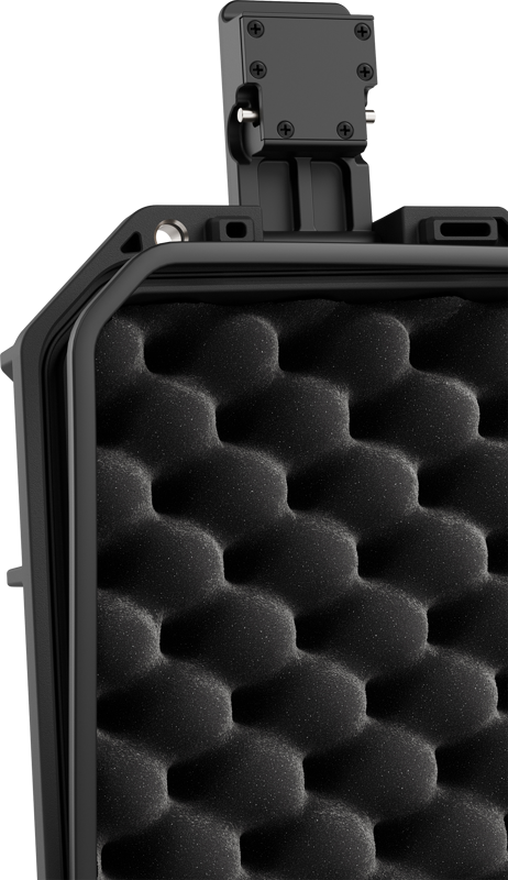 Invändigt erbjuder väskan en 23-liters kapacitet med en intelligent förvaringslayout. Ett vadderat skiljeväggssystem i tre delar, kombinerat med lock- och bottenskum, gör att du säkert kan förvara allt från kamerahus och objektiv till mikrofoner och verktyg. De säkra spärrarna håller tätt och de rostfria stålförstärkta låshålen möjliggör extra hänglåssäkerhet. En tryckutjämningsventil säkerställer smidig öppning även efter flygningar eller höjdförändringar.