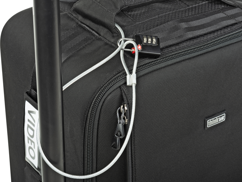 - Lock the main compartment and secure your bag with the included lock and cable