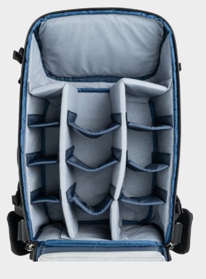 - Justerbara avdelare rymmer stora teleobjektiv, traditionell fotoutrustning eller personliga föremål