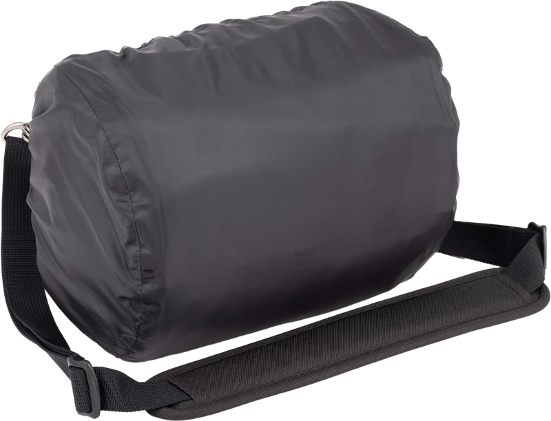 - Vikt 0,38 kg (inklusive regnskydd och axelrem).