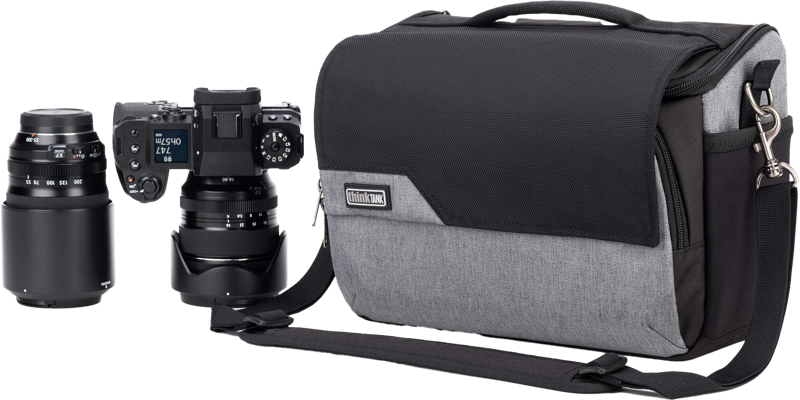 Think Tank Mirrorless Mover 30 passar ett spegellöst standardhus plus 2 till 4 objektiv: korta till medellånga f/4- och f/2,8-zoomar eller korta till medellånga fasta objektiv.