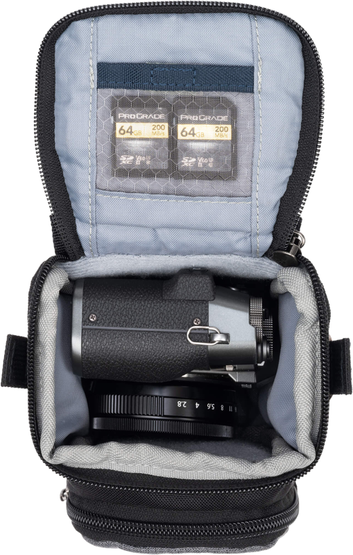 - Extra förvaringsficka för batterier eller kompakta tillbehör under locket