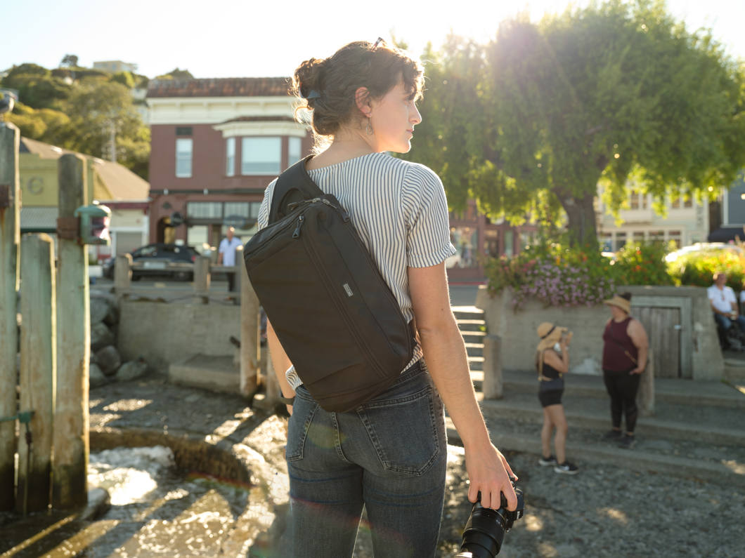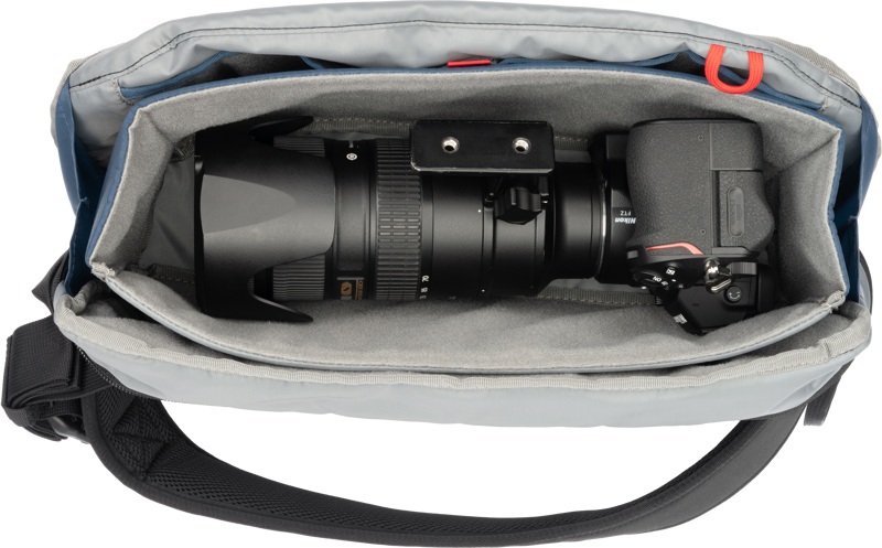PressPass Sling är en dedikerad slingväska. En bred öppning ger snabb och enkel åtkomst till all din utrustning, oavsett om du använder den som kameraväska eller bara för att byta objektiv. Den vadderade insatsen är dessutom löstagbar för att öka det inre utrymmet och skapa en mjukare och smidigare väska.