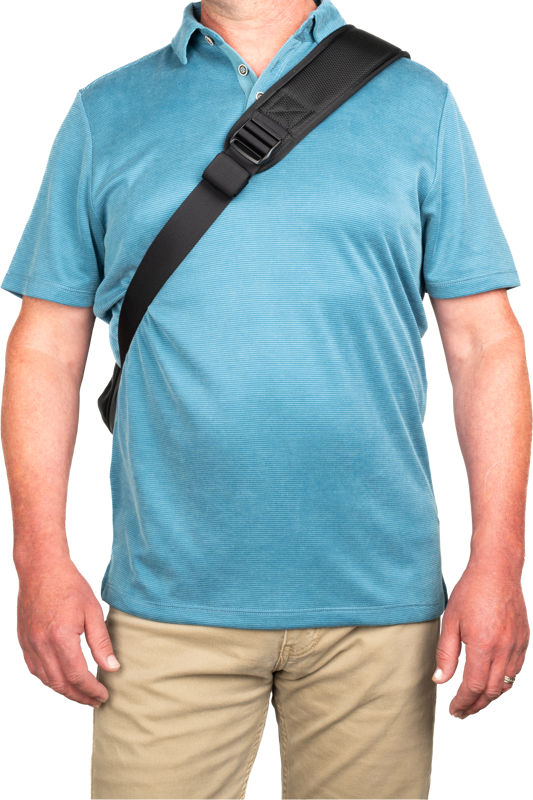 - Axelrem i slingväska med valfritt infällbart stabiliseringsbälte