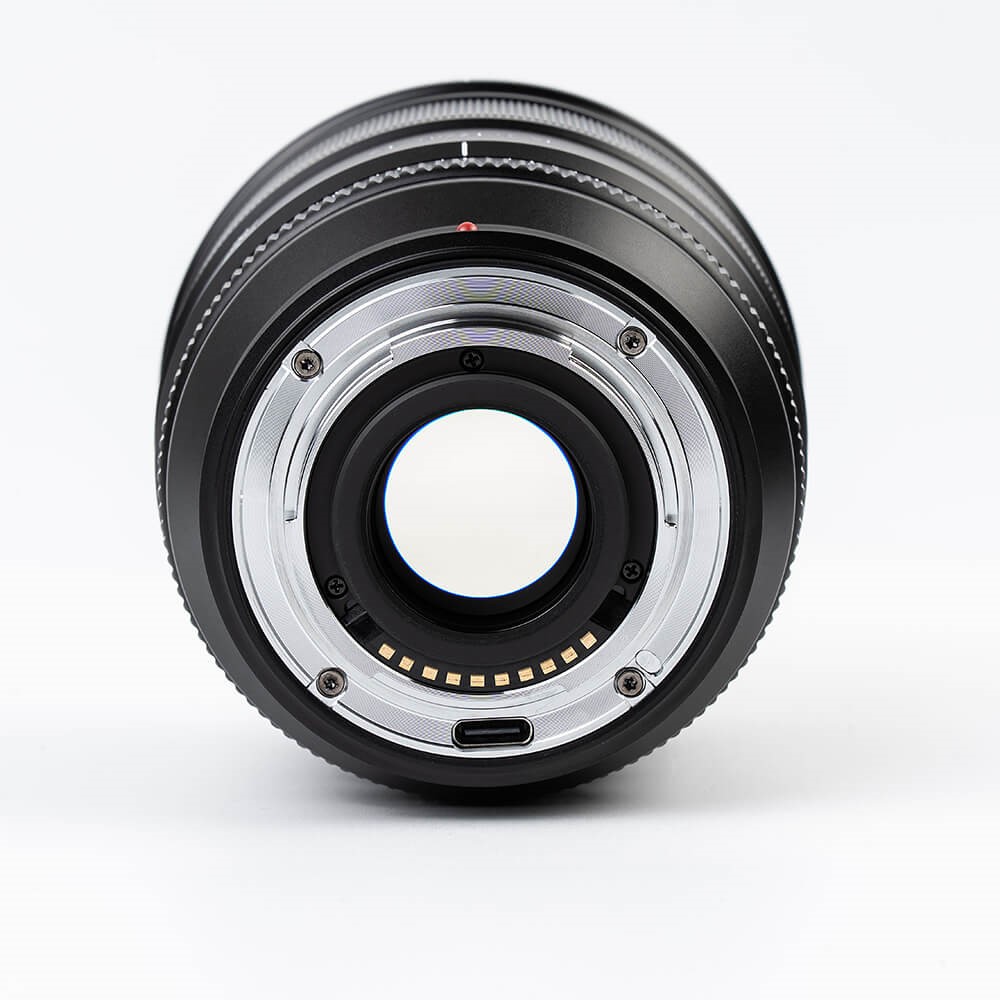 Objektivet har elektroniska metallkontakter som stöder Exif-informationsöverföring och USB-C-gränssnitt för firmware-uppgraderingar.