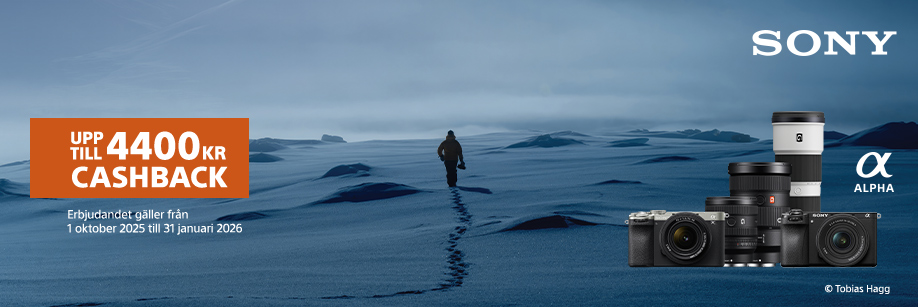 Under perioden 1 oktober till 31 januari erbjuder Sony pengar tillbaka när du köper utvalda kameror, objektiv och tillbehör.Efter att du genomfört ditt köp registrerar du produkten via Sonys hemsida. När anmälan är godkänd sätts pengarna in direkt på ditt bankkonto.